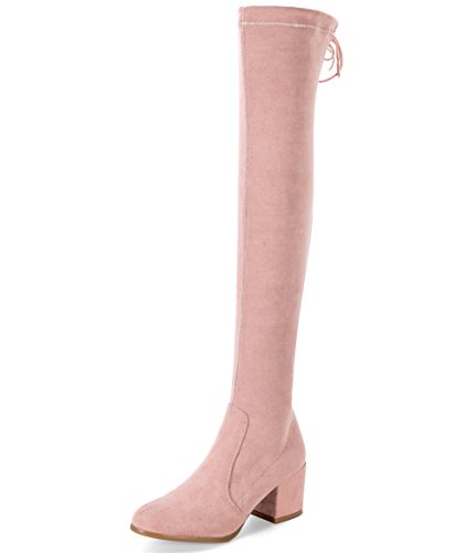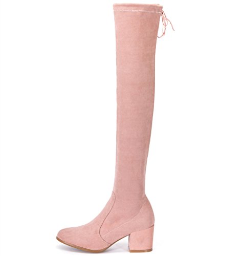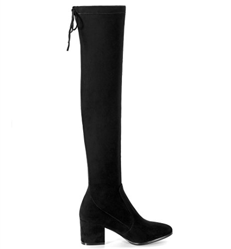 (Nine Seven)/Women's/Boots/DIRECT FROM USA/Nine Seven Suede Leather Women's Round Toe Chunky Heel Handmade Trendy Dress Over The Knee Boots