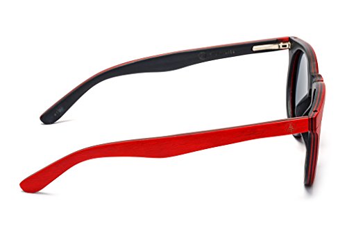 Each pair is created from thin layers of colored wood and compressed together. We use high quality certified polarized lenses and stainless steel flex hinges that can hyper-extend for a universal fit.