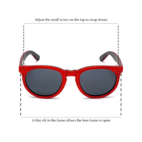 A small screw on the top of the frame allows you to open it up and swap in your own lenses. There is a thin horizontal slit on the outside of the frame near the lens that allows the frame to open up. Swap in prescription lenses or hit us up for more lens colors, it's up to you!