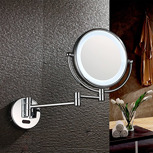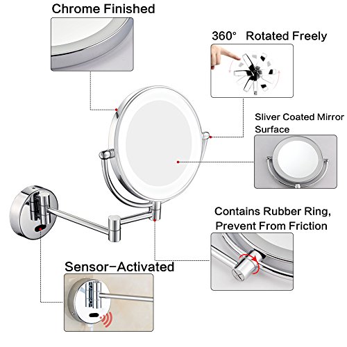 GURUN Lighted Magnifying Mirror 8inch Wall Mount Sensor-Activated with 5x Magnification,Chrome Finish With Plug M1803D(8in,5x, Plug)