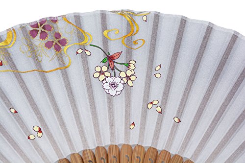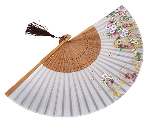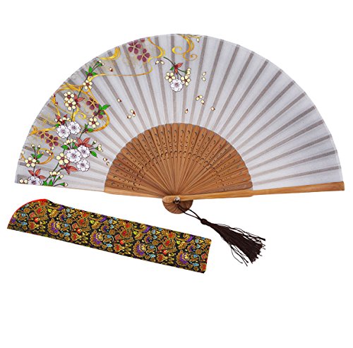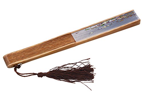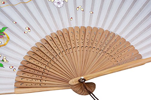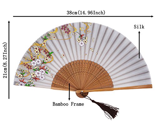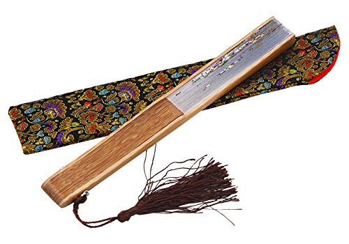 Amajiji Charming Elegant Modern Woman Handmade Bamboo Silk 8.27" (21cm) Folding Pocket Purse Hand Fan, Collapsible Transparent Holding Painted Fan with Silk Pouches/ Wrapping LXHSZ (LXHS-21)