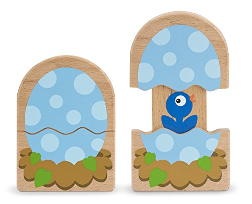 When little ones grasp and pull the two halves of this wooden egg, a baby bird is "born"! With a different bird to reveal on each side, this wooden baby and toddler toy is lots of fun to pull open, click closed and turn around again and again. Classic styling and wooden construction make First Play Slide & Seek Egg an ideal first-birthday present, and a wonderful challenge for little ones working on hand-eye coordination and motor skills. It's beautifully designed, durably made and full of playtime ideas for parents and babies to share!Feature