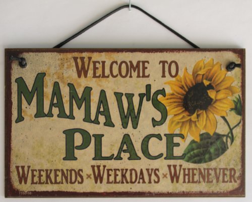 5x8 Vintage Style Sign with Sunflower Saying, "Welcome to MAMAW'S PLACE Weekends, Weekdays, Whenever " Decorative Fun Universal Household Signs from Egbert's Treasures