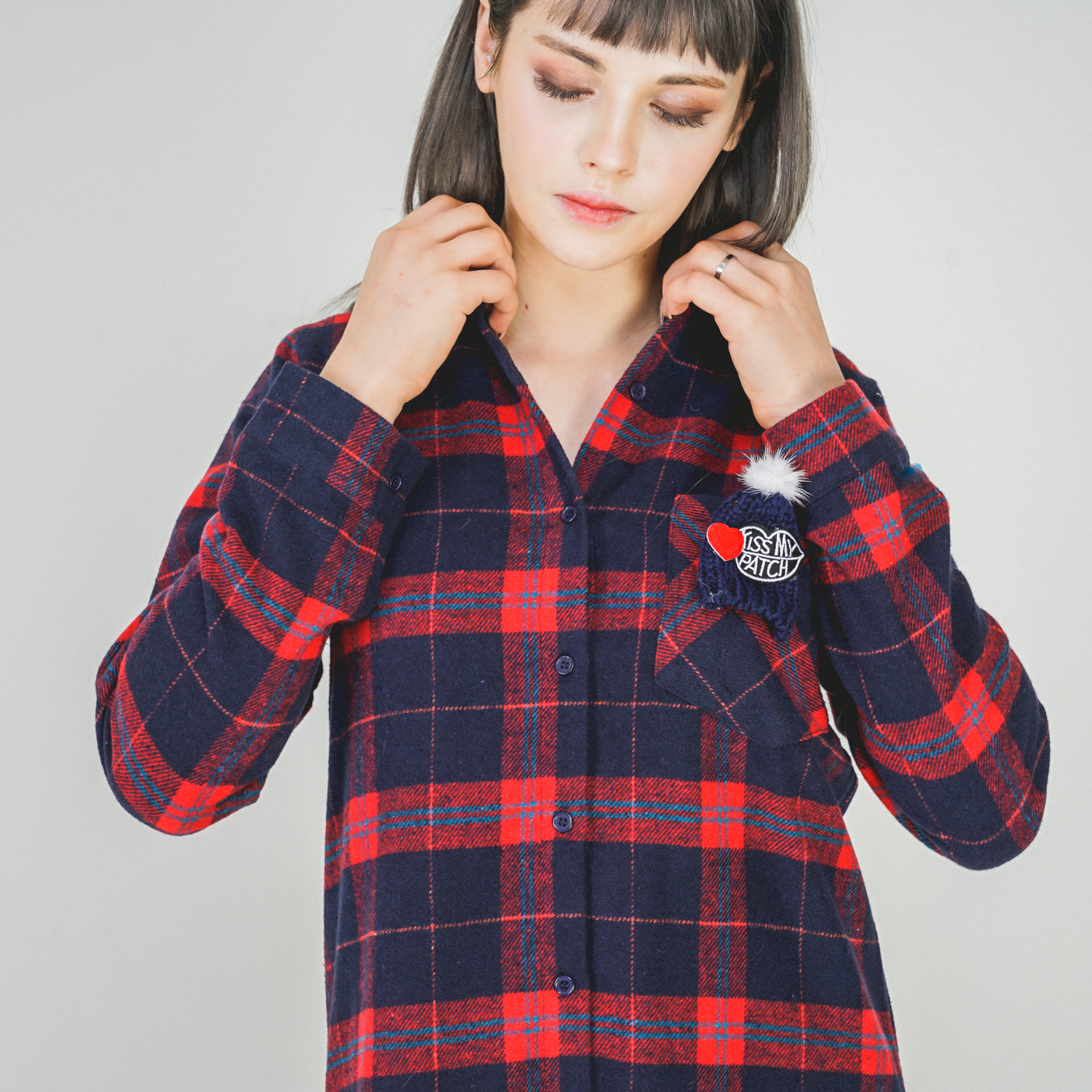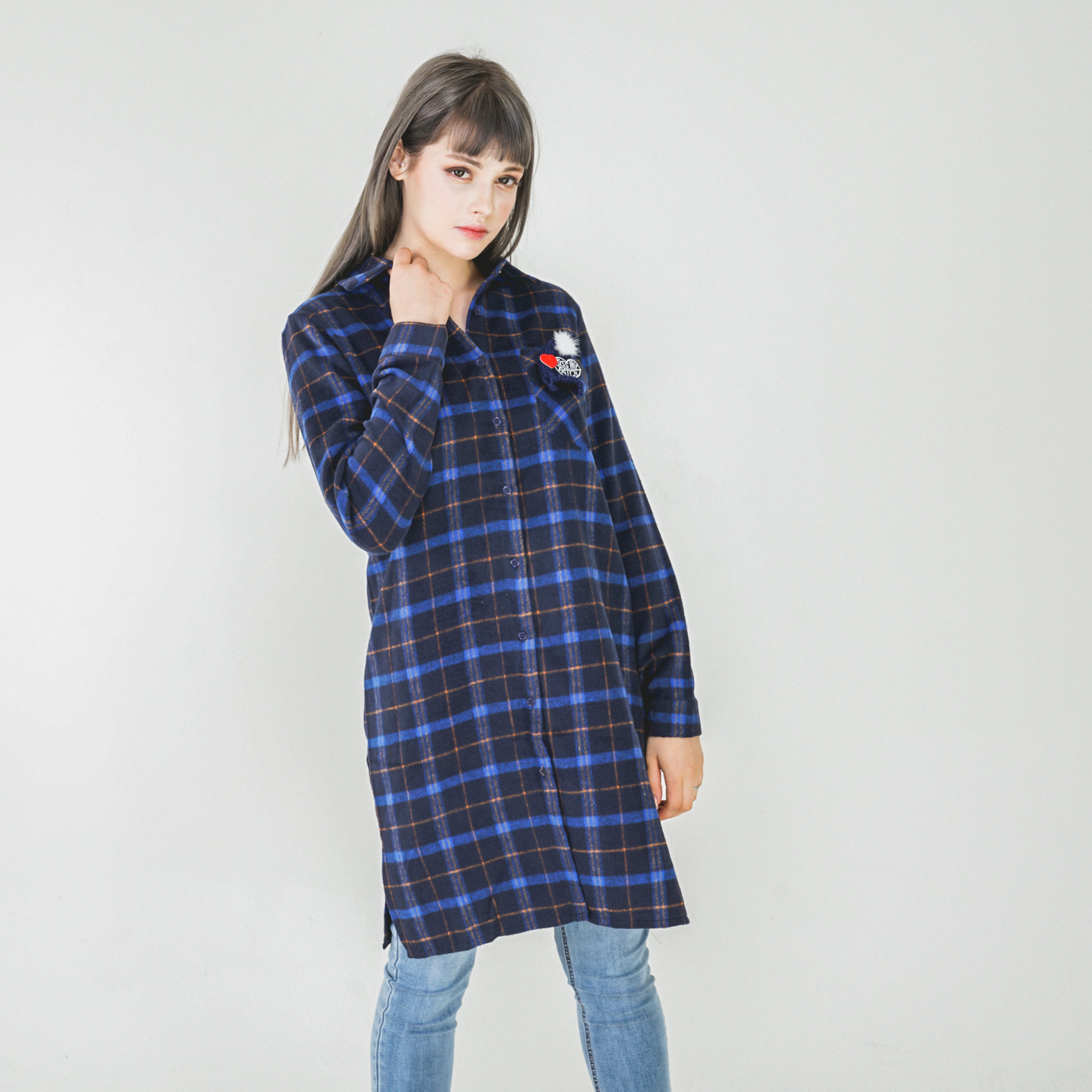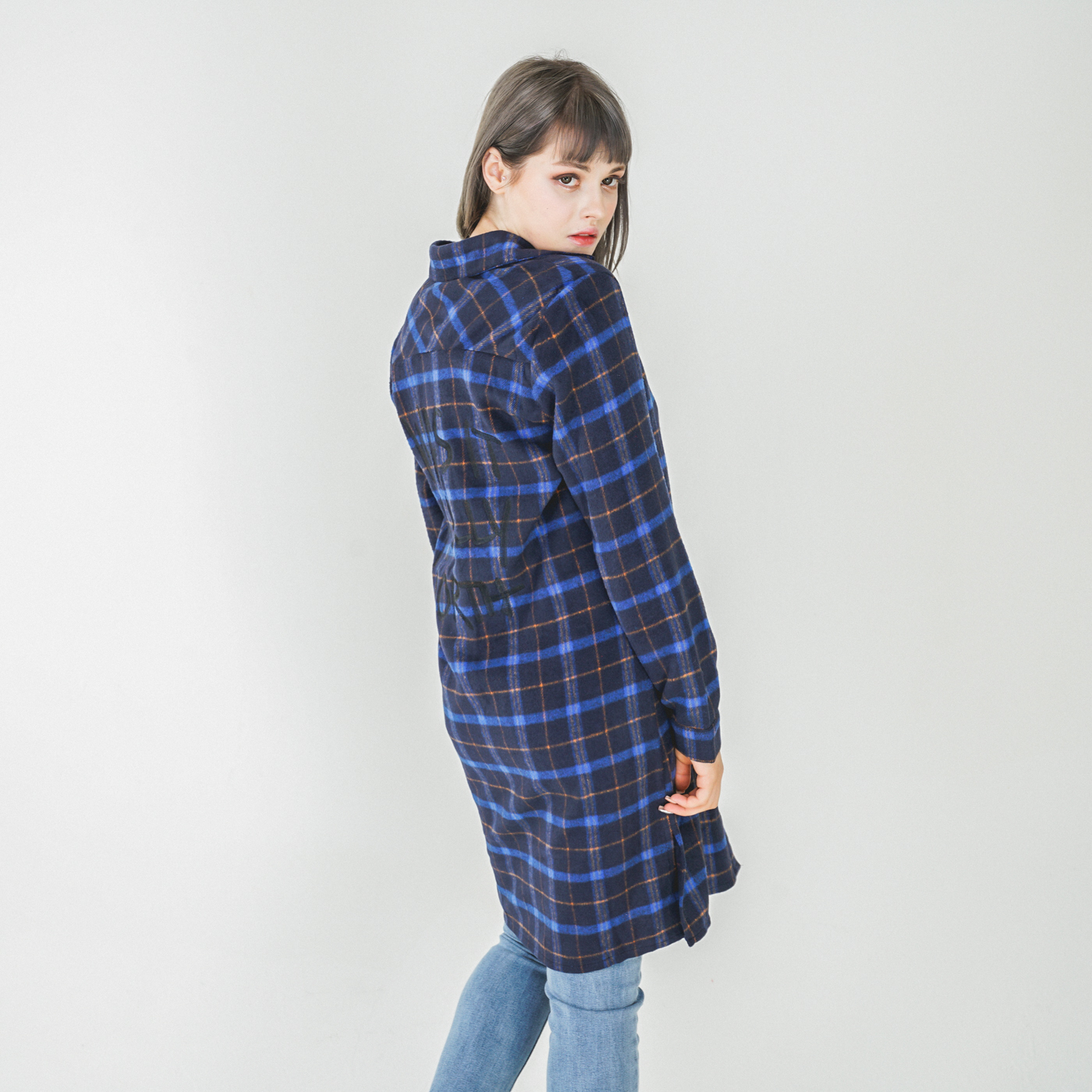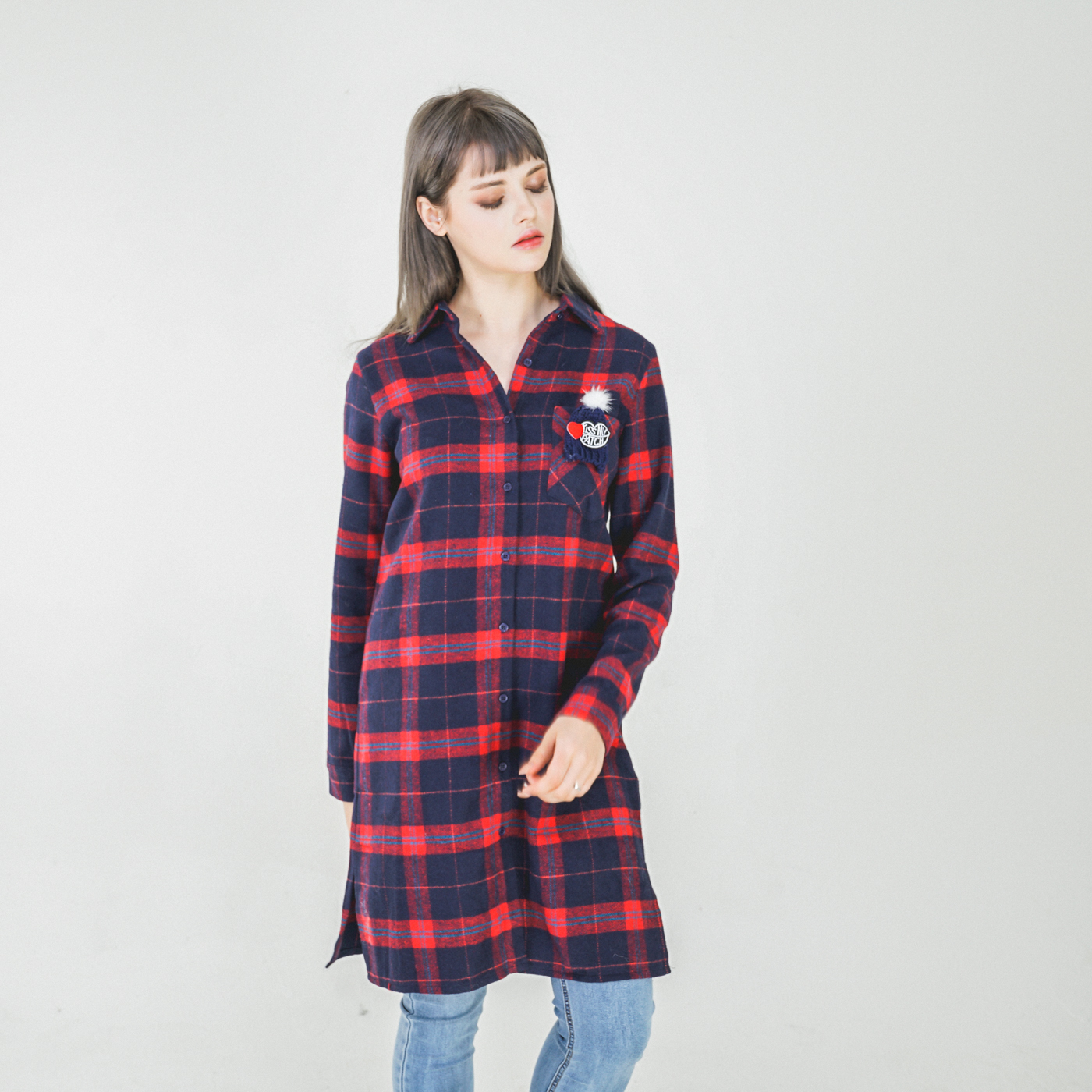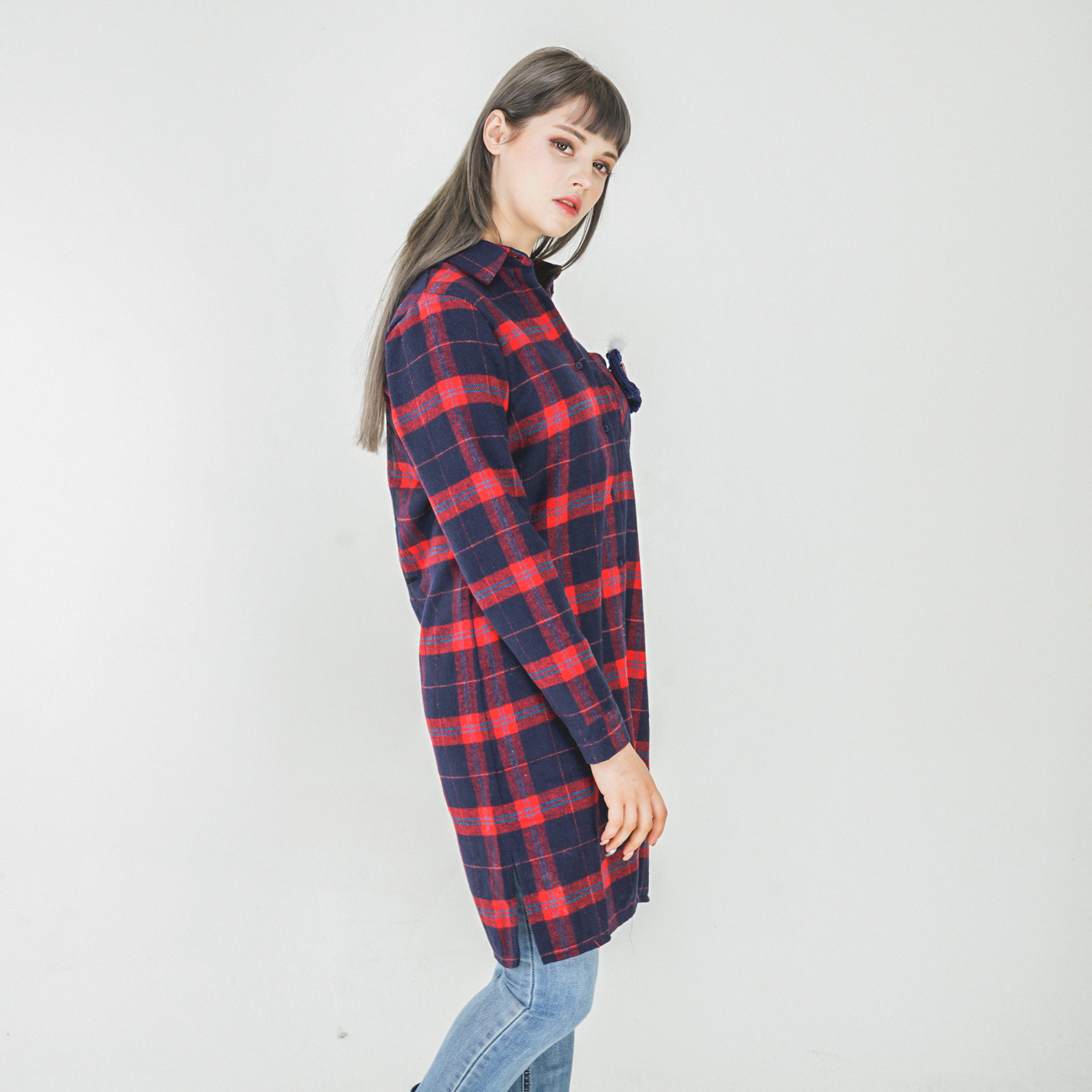 체크의 캐주얼한 셔츠 원피스로 팬츠와 코디해도 멋진 스타일입니다.
