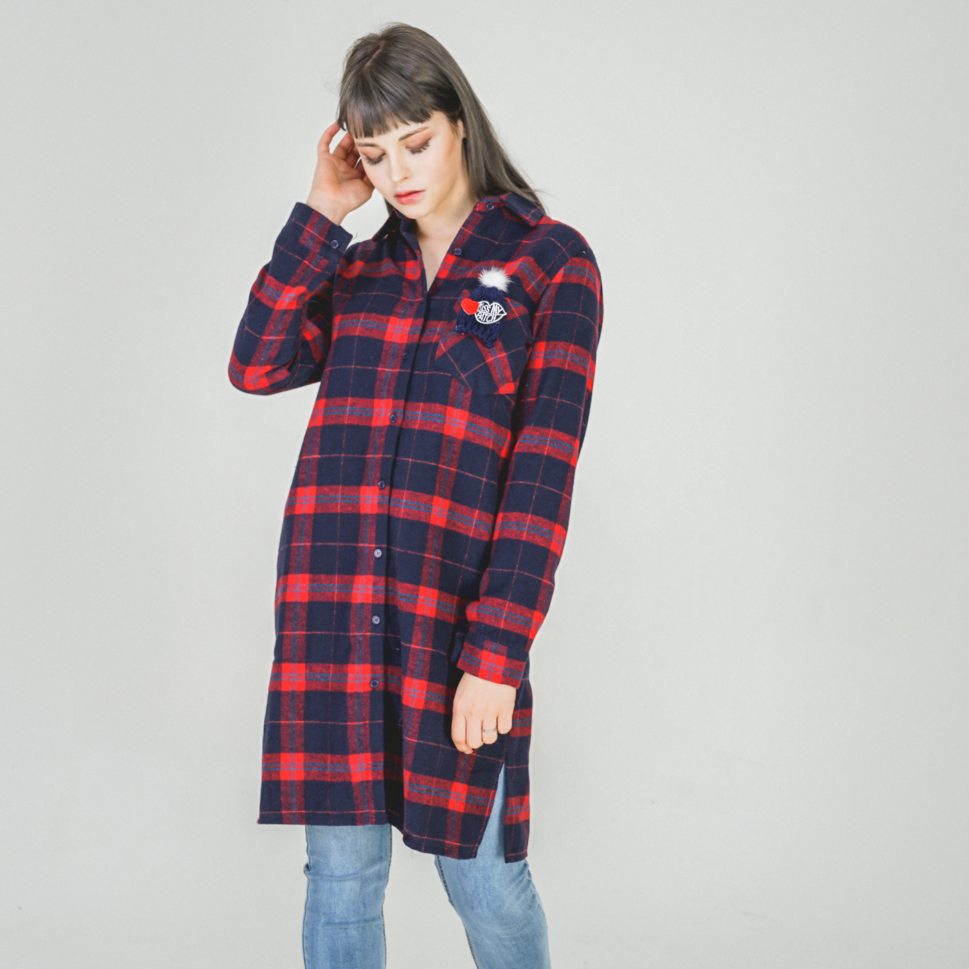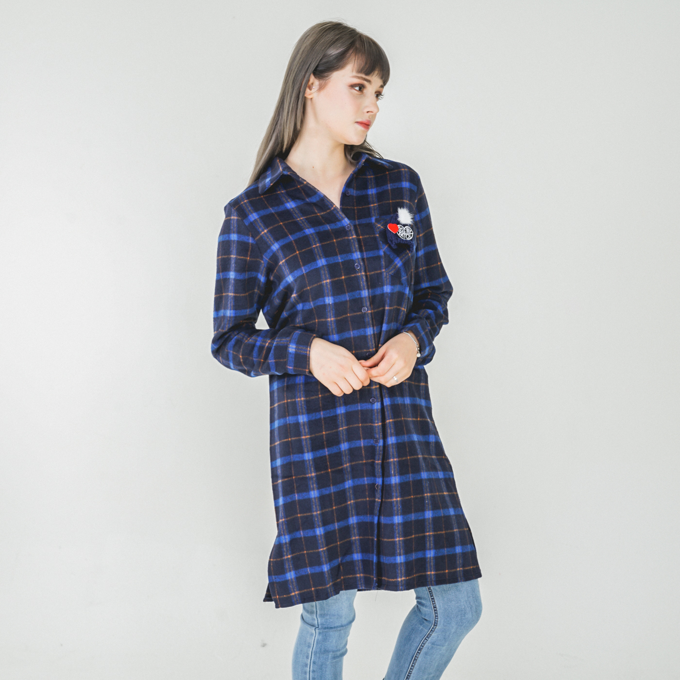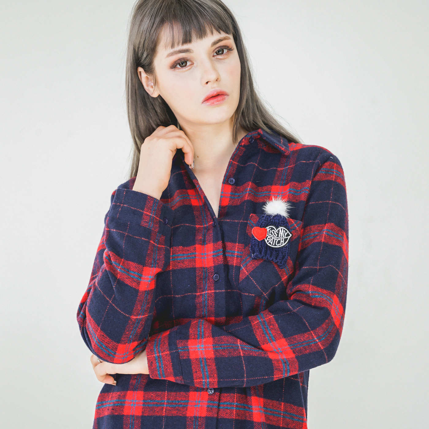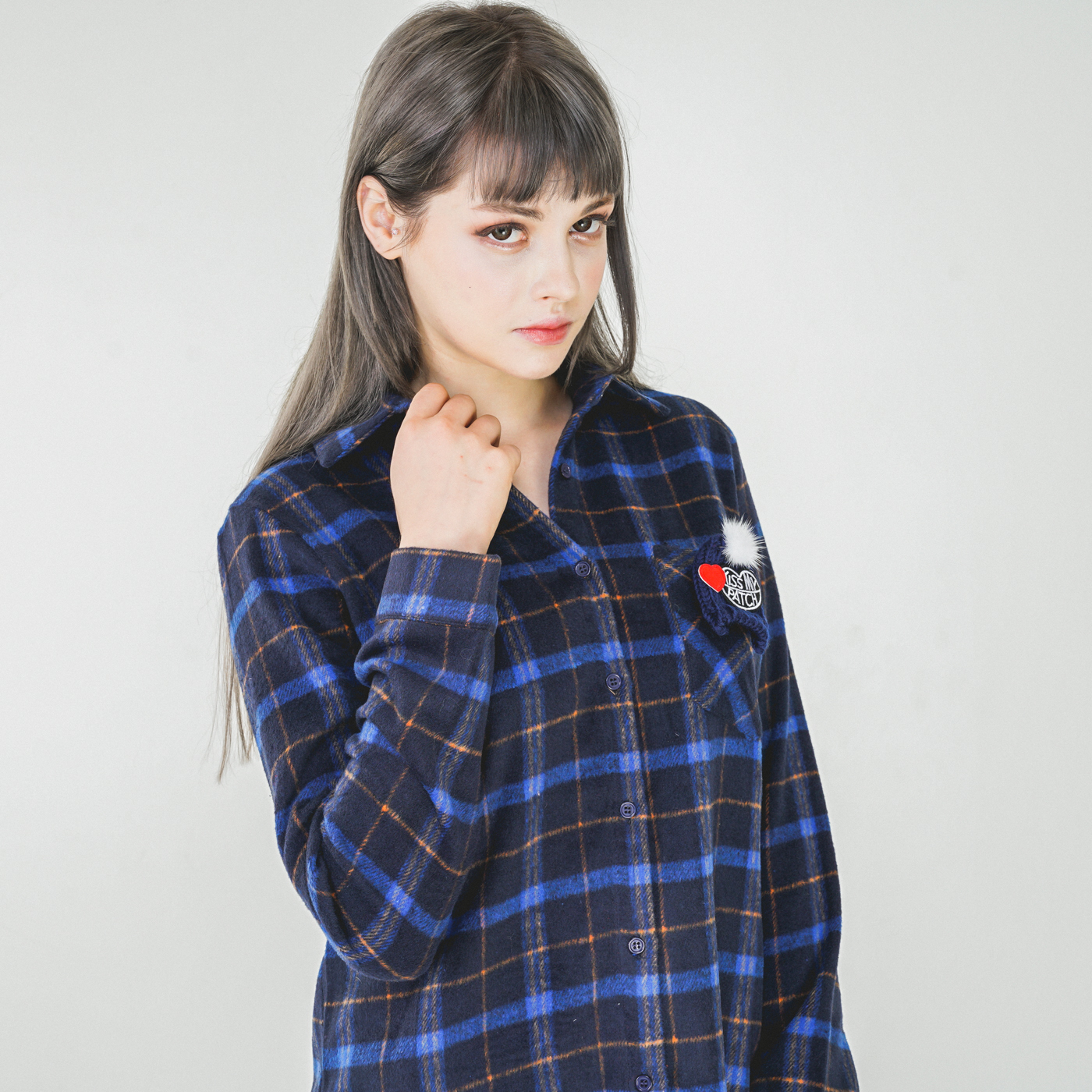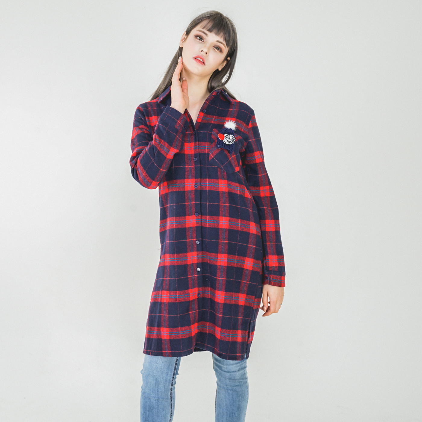 체크의 캐주얼한 셔츠 원피스로 팬츠와 코디해도 멋진 스타일입니다.