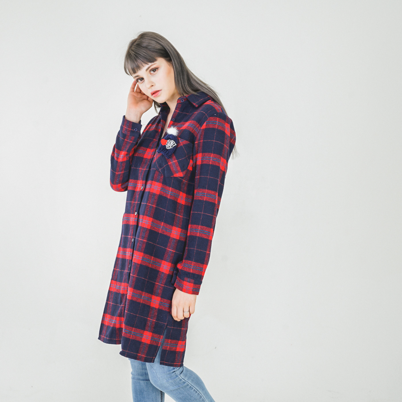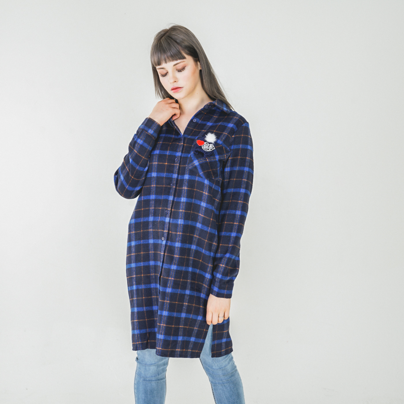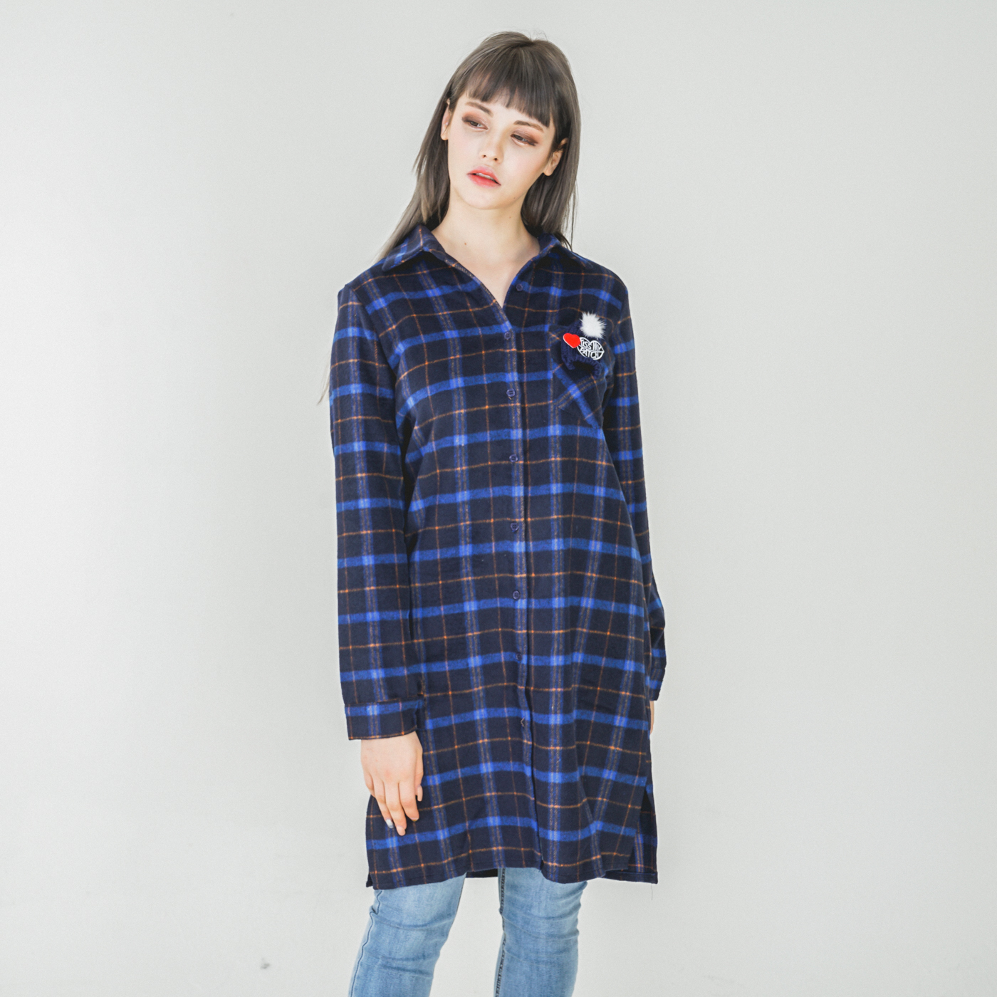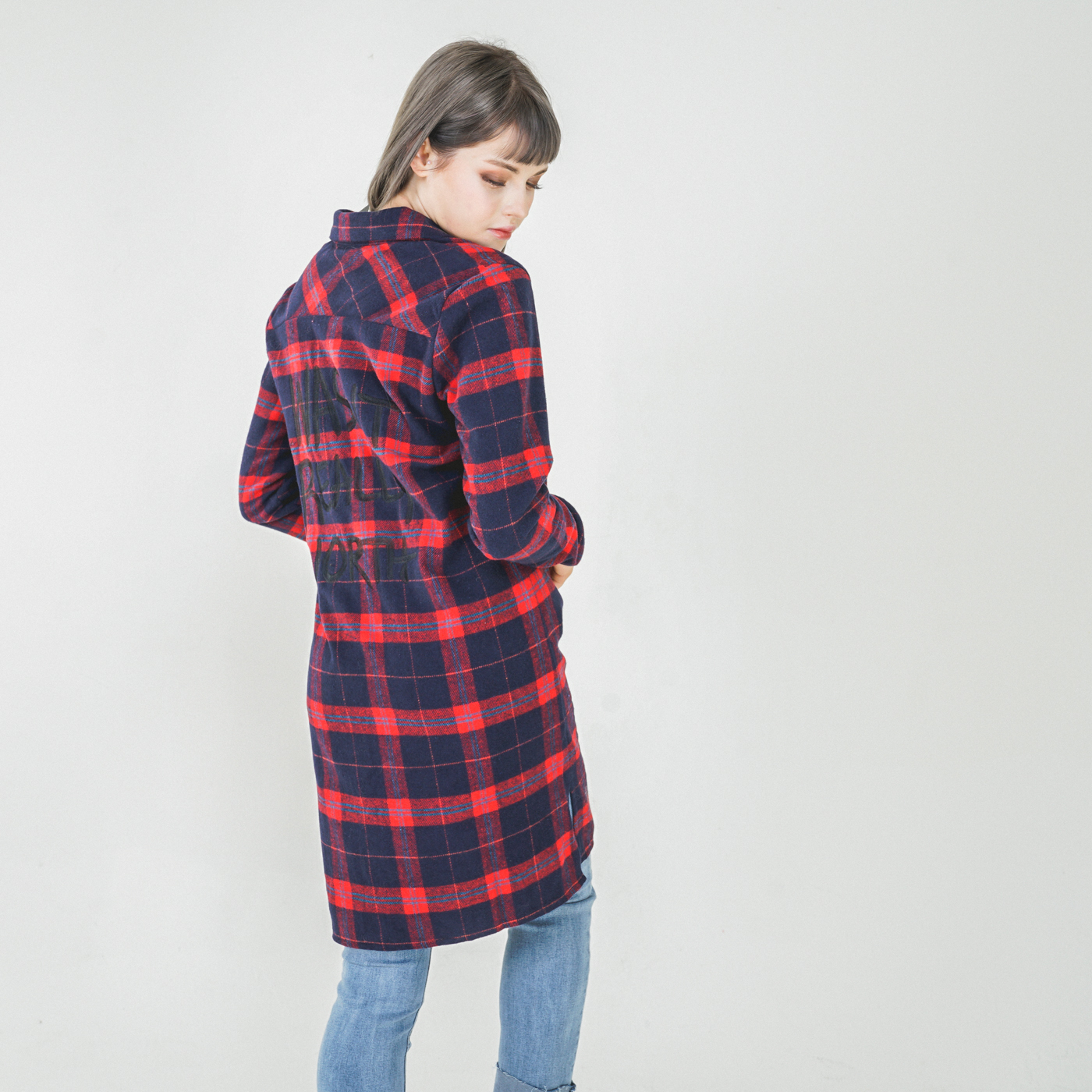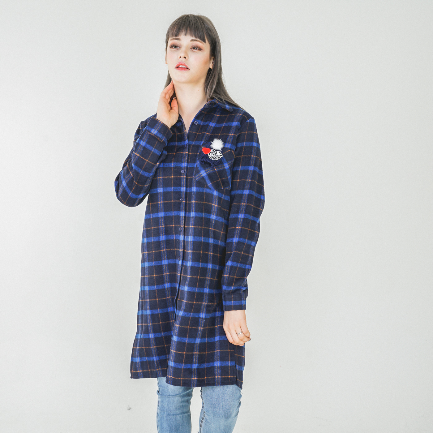 체크의 캐주얼한 셔츠 원피스로 팬츠와 코디해도 멋진 스타일입니다.