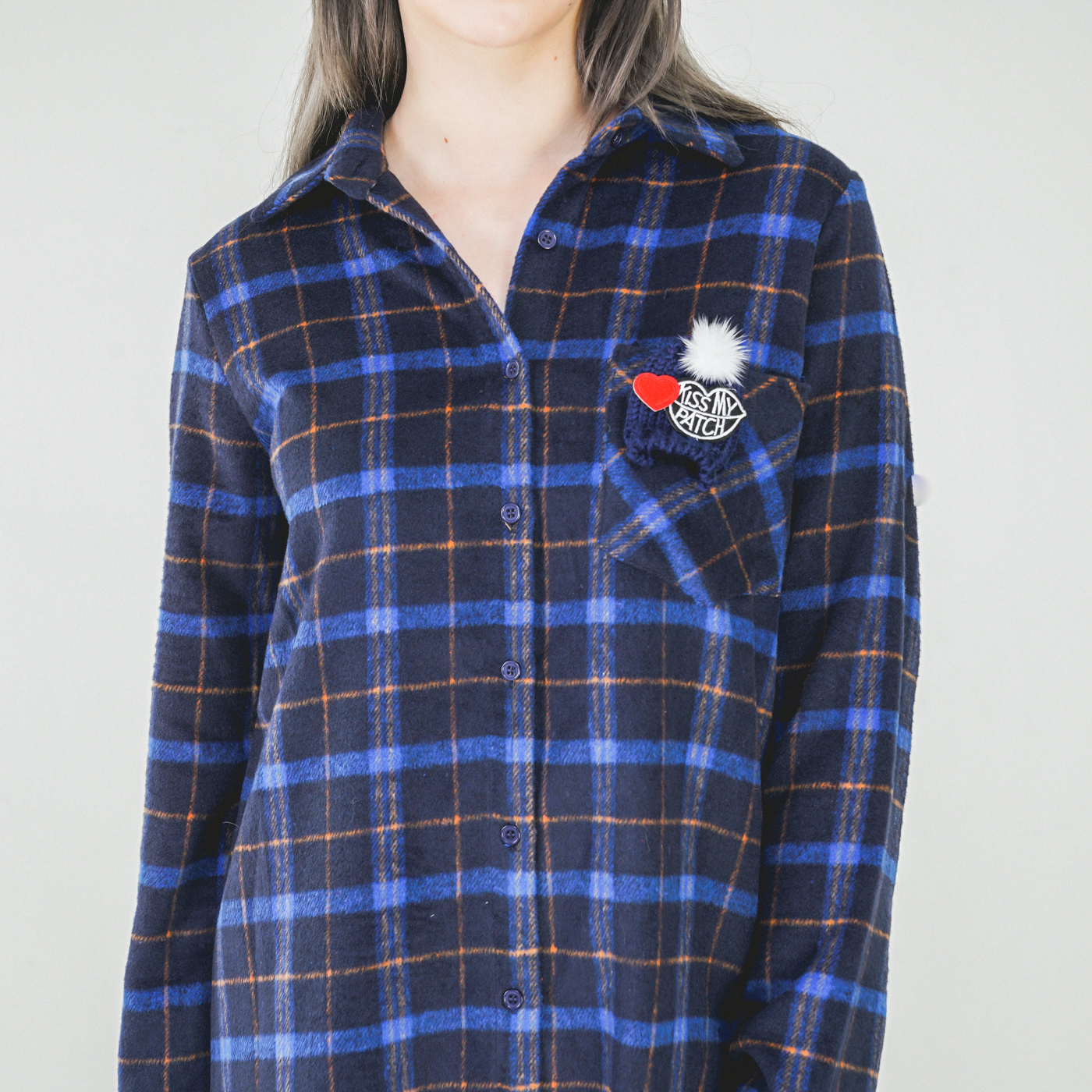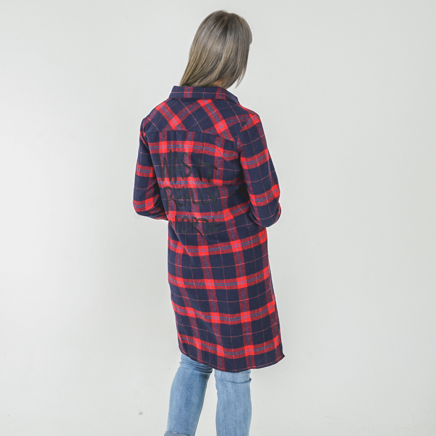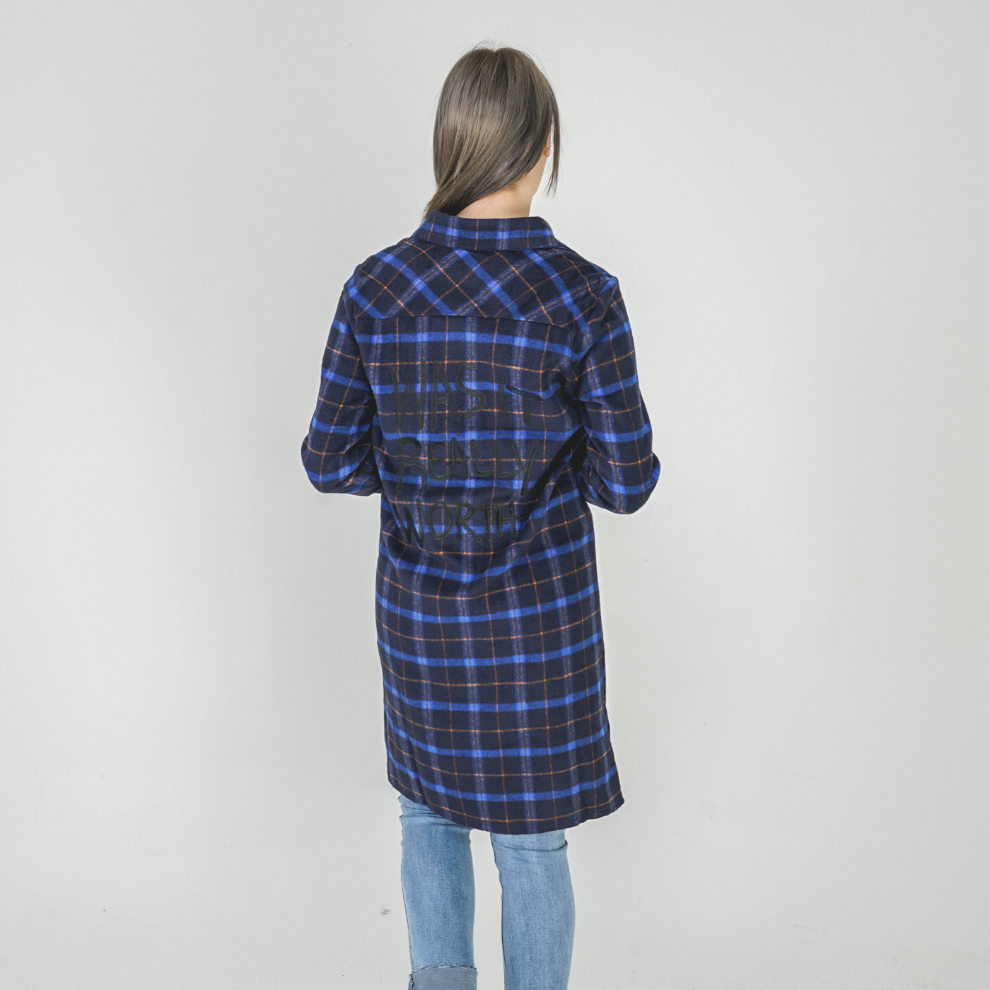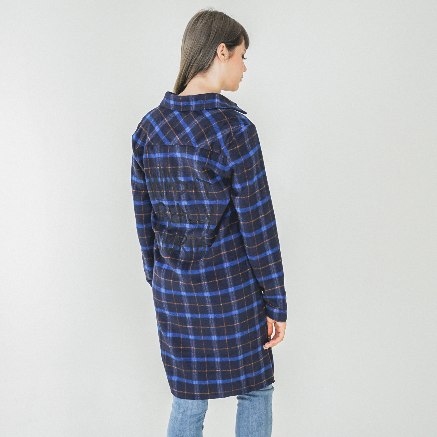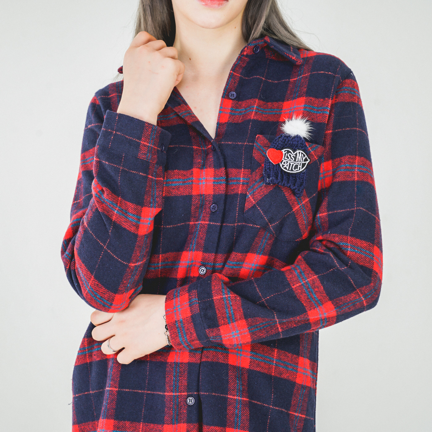 체크의 캐주얼한 셔츠 원피스로 팬츠와 코디해도 멋진 스타일입니다.