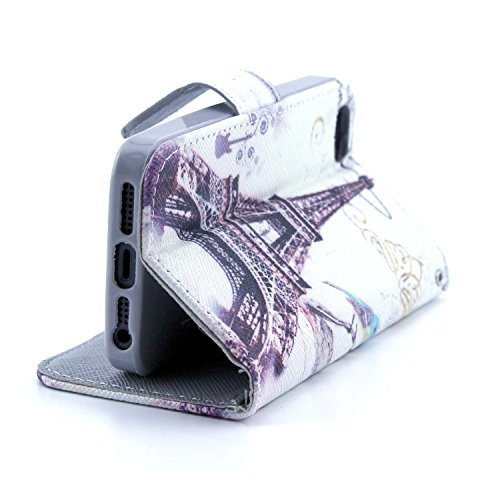 iPhone 5S Case, iPhone 5 Case, Speedtek Eiffel Tower Pattern Premium PU Leather Wallet Flip Protective Skin Case with Magnetic Closure for Apple iPhone 5 5G (2012) & iPhone 5S (2013) (Built-in Credit Card/ID Card Slot)