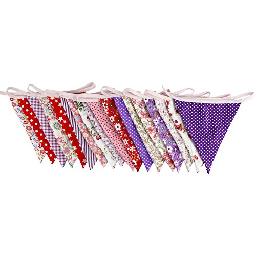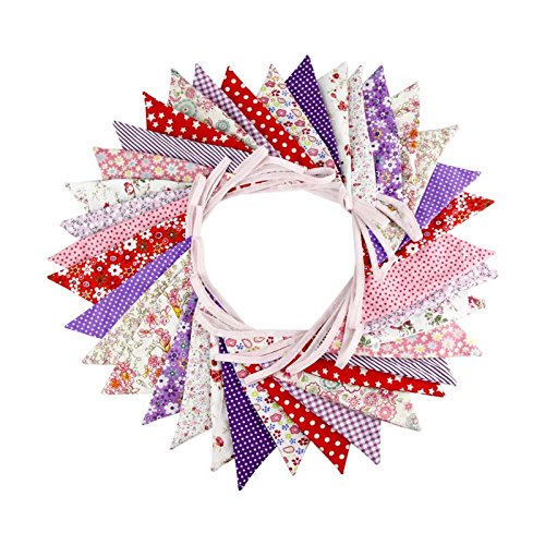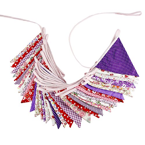 10M/32 Feet 36 PCS Lovely Triangle Bunting Flag Banner Pennant Garland Fabric Flags Double Sided Vintage Cloth Shabby Chic Decoration for Wedding,...