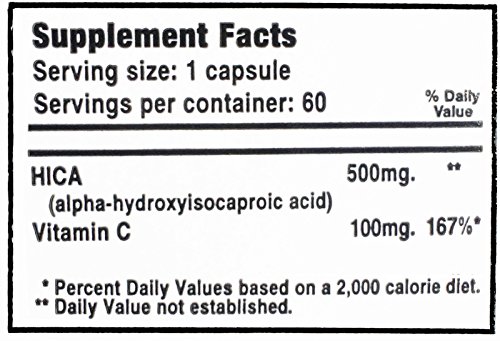 -. Binding : Health and Beauty -. Brand : House Of Muscle -. EAN : 0094922416971 -. Feature : 500mg of HICA (alpha-hydroxyisocaproic acid) Per Capsule / Plus, 100mg of Vitamin-C / Decrease Muscle Soreness / Muscle Growth Stimulator / Improve Recovery -. IsAdultProduct : 0 -. Label : House of Muscle -. LegalDisclaimer : The statements made about this product have not been evaluated by the FDA. This product is not intended to diagnose, treat, cure or prevent disease. -. Manufacturer : House of Muscle -. PackageQuantity : 1 -. ProductGroup : Health and Beauty -. ProductTypeName : HEALTH_PERSONAL_CARE -. Publisher : House of Muscle -. Studio : House of Muscle -. Title : HICA-C (alpha-hydroxyisocaproic acid) -- Decrease Muscle Soreness -- 60 capsules -. UPC : 094922416971