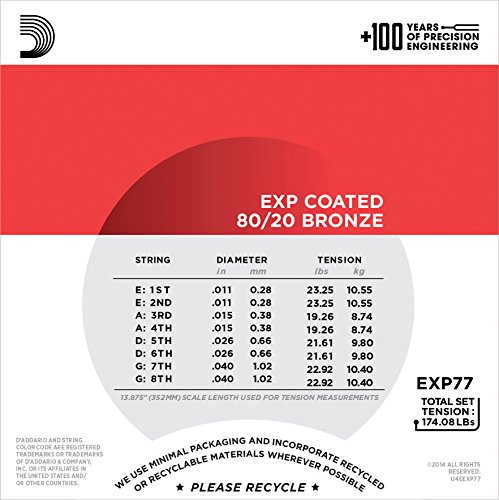 D'Addario EXP77 Coated 80/20 Bronze Mandolin Strings, Medium, 11-40