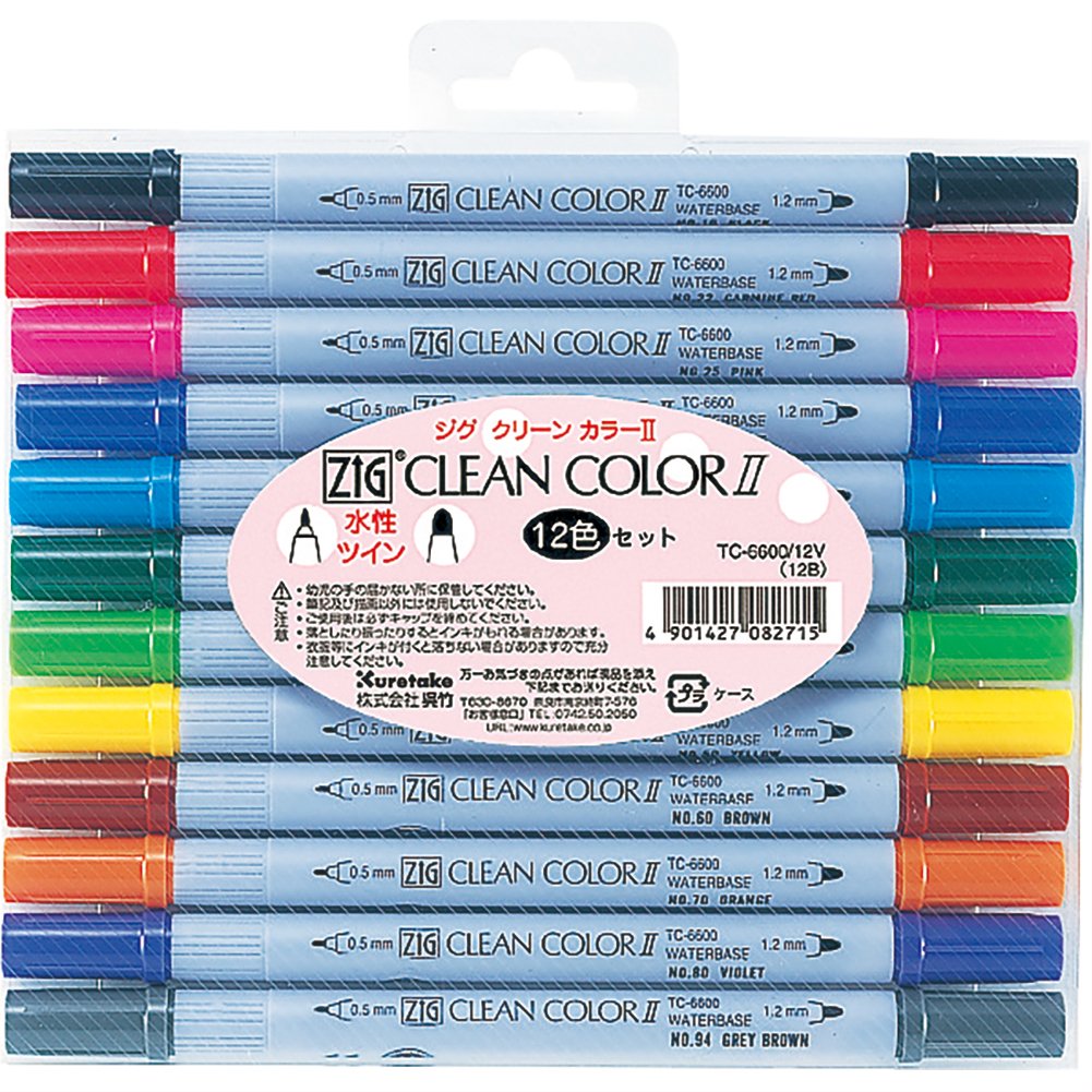 Kuretake Fude Real Brush Pen Twin ZIG Clean Color II 12 Set (TC-6600/12V)
