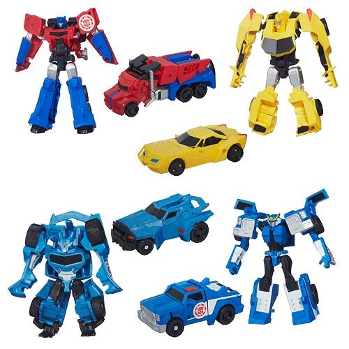 -. Feature : From the TV show! Transformers Robots in Disguise Legion / Set Includes 4 Individually Packaged Figures / Figures Included: Optimus Prime, Bumblebee, Steeljaw & Strongarm / 3-inch robots convert to cool disguises like police cars and dinosaurs