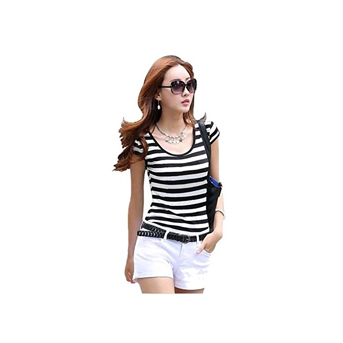 원본상품명: ボダTシャツ 縞Tシャツ U首半袖 細く見えるモノクロTシャツ (M)