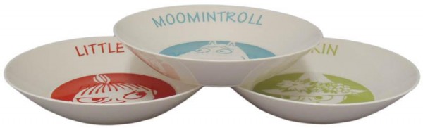 | ムーミン、ミイ、スナフキンのパスタプレート3枚セットです。底が深めになっているのでパスタはもちろん、カレーやシチューなどにも最適です。 |