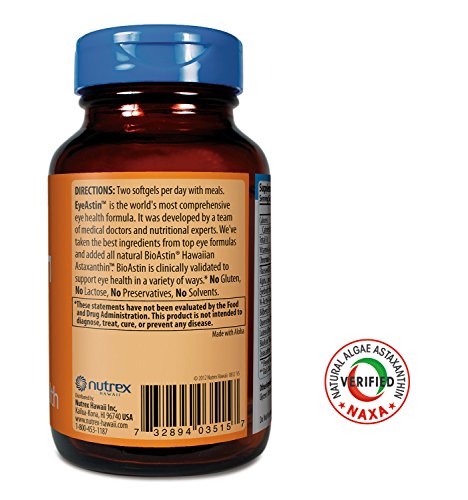 ReleaseDate : 2016-05-19 Studio : Nutrex Hawaii Publisher : Nutrex Hawaii Binding : Health and Beauty Product Description Everyone knows how important proper eye health is to one's well-being. If you're looking for a natural supplement that supports eye health, try Nutrex Hawaii's EyeAstin. 0