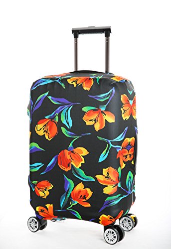 - This luggage cover fits the standard-sized check-in suitcase very snug as it stretches like spandex. It has an opening on the top and the side for handles. The bottom zips together between the wheels. - It does fit perfectly and nicely , the material of the suitcase cover is very stretchy and durable - The suitcase cover is really nice because it is made of a thick, stretchy but soft material, with a beautiful print.