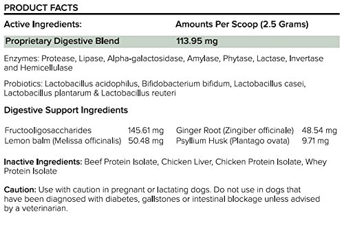COMPLEX SYSTEM OF PREBIOTICS and PROBIOTICS FOR DOGS - Provides essential pre- and probiotics for dogs, including Lactobacillus acidophilus, Bifidobacterium bifidum, Lactobacillus casei, Lactobacillus plantarum, and Lactobacillus reuteri, which help to reestablish a healthy intestinal balance in your dog. Your dogs gastrointestinal (GI) tract is their body's number one barrier against disease.