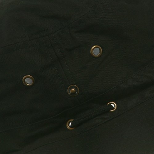 -. Feature : Made of 100 % Cotton. / Crown measures 9.5cm deep, Brim measures 7.5cm deep. / Side Snaps and Chin Cord. / Imported.
