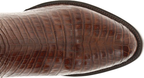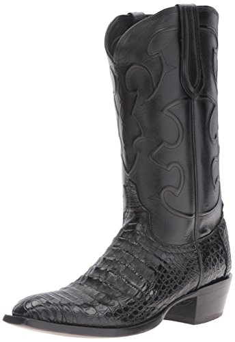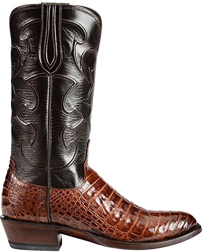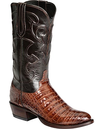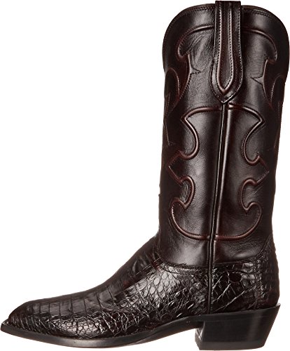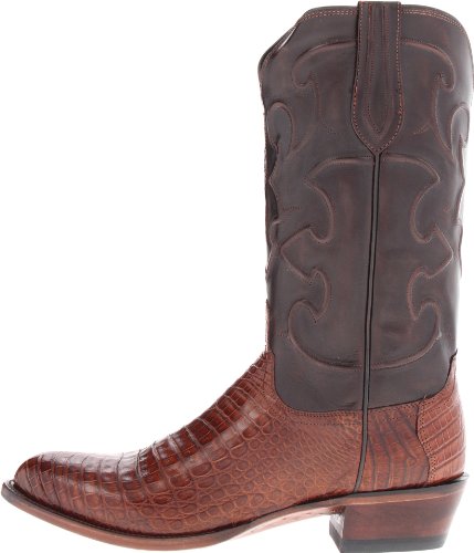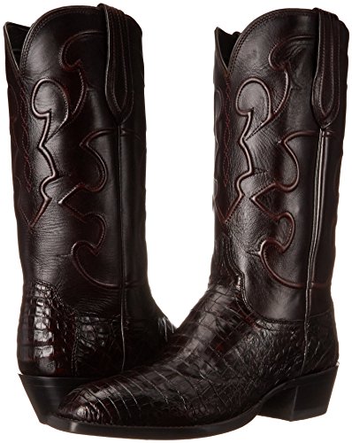 Product DescriptionCharles is a distinguished,?upscale cowboy boot. dark leather quarters feature handmade?cording signature stitch patterns while the sleek vamp boasts?exotic?belly caiman. leather sole. handmade in mexico.?0