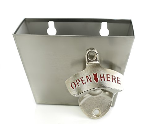 -. Brand : Soula Designs -. Color : Silver -. EAN : 0645360025319 -. Feature : Heavy duty wall mount bottle opener with a cool retro look and feel / Lightweight stainless steel cap catcher, easy to remove, holds approximately 75 bottle caps / Easy to install with pre-drilled holes. Includes wall mounting hardware (heavy duty screws and wall anchors) / Well packaged and complete set comes in a gift box / Lifetime money back guarantee if not 100% satisfied! -. Label : Soula Designs -. Manufacturer : Soula Designs -. PackageQuantity : 1 -. ProductGroup : Kitchen -. ProductTypeName : KITCHEN -. Publisher : Soula Designs -. Studio : Soula Designs -. Title : Soula Designs Wall Mounted Beer and Soda Bottle Opener Set with Stainless Steel Removable Cap Catcher Bin, Free Mounting Hardware Included, Quick and Easy Installation Mount -. UPC : 645360025319