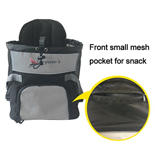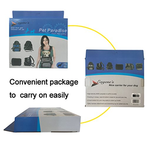 -. Binding : Misc. -. Brand : Eugene's -. Color : black-grey -. EAN : 0648676995048 -. Feature : High-density 600D polyester is soft and durable / Padding in straps back and bottom created for you and your dog / A hard bottom for your dog easily to stand up inside / Save harness attachment and drawstring top for additional security / for your pets up to 20 lbs -. Label : Eugene's -. Manufacturer : Eugene's -. PackageQuantity : 1 -. ProductGroup : Pet Products -. ProductTypeName : PET_SUPPLIES -. Publisher : Eugene's -. Size : m -. Studio : Eugene's -. Title : Eugene's front pet carrier, travel bag, free your hands, pet backpack -. UPC : 648676995048