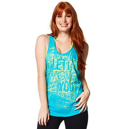 Zumba Womens Let It Move You Loose Tank, Waterfall, X-Large