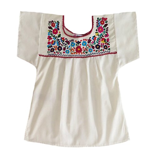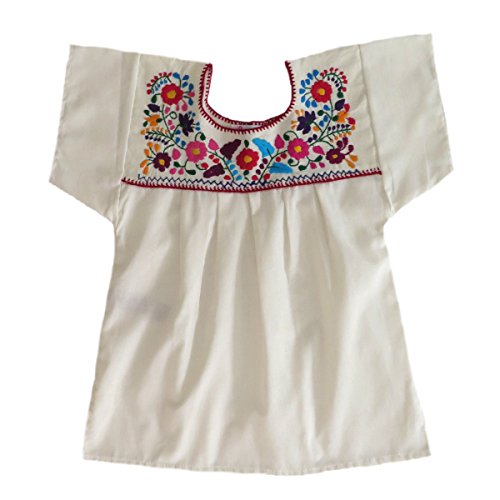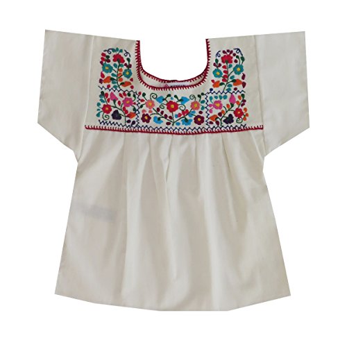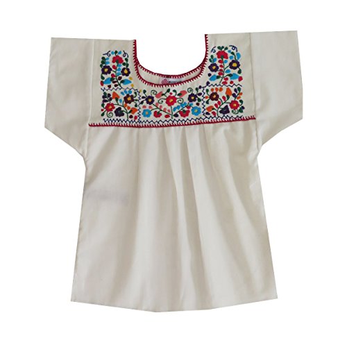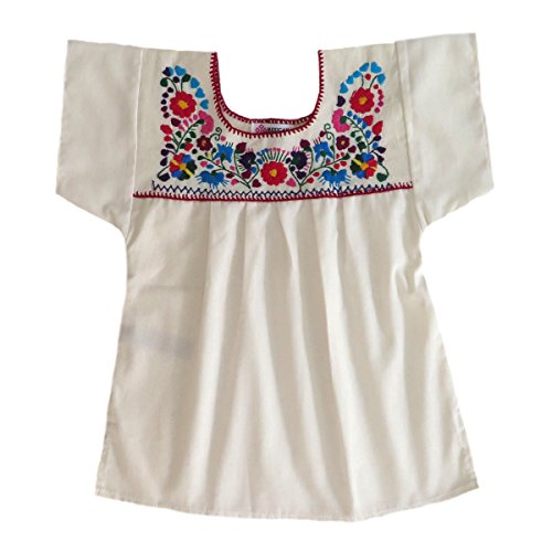 This beautiful Mexican blouse is a version of the traditional and peasant Puebla Mexican blouse in manta, a very light 100% cotton fabric. The blouse is typical of the region of Tehuacan in the state of Puebla. The style is loose and very simple. The sleeve is the peasant straight style which makes it look very traditional. This Mexican blouse is perfect for a warm day, for the beach over your swim suit, or a casual outfit over jeans or leggings. All of the items are one of a kind because combinations of fabric and thread colors are unique. The color description is only for the fabric. It is usually cut and designed by a family or cooperative, and then is sent to women in communities across the region for embroidering.Feature