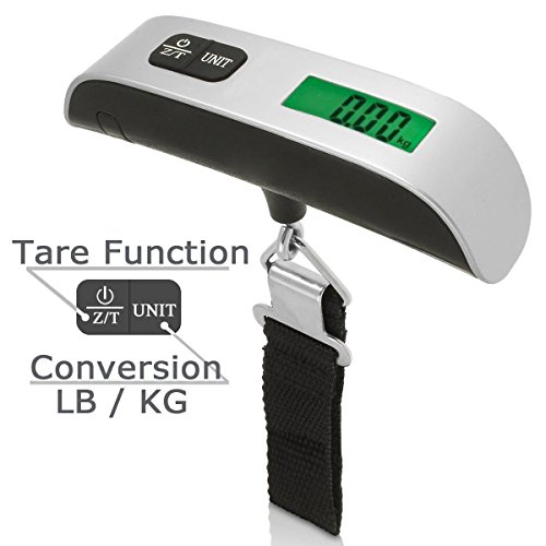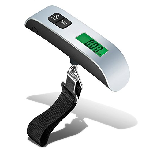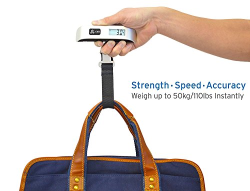 Specification: - Durability and Accuracy: 110lb/50kg capacity. Accuracy of up to 0.02lb/10g and 1 degree Celsius Thermometer temperature sensor in both F° and C°. Know your delicate luggage is in an ideal climate - Easy-to-read LCD display you do not have to strain or bend to see - Low battery/over load indication - Auto Shut-Off after 30 seconds preserves battery - Power: 1 x 3V CR2032 lithium battery (included) Advantages: -- Low battery indicator with auto shut off. - Fits comfortably in the palm of your hand offering a good grip to lift heavy baggage -Compact and easy to carry so you can take it with you when you travel. 0