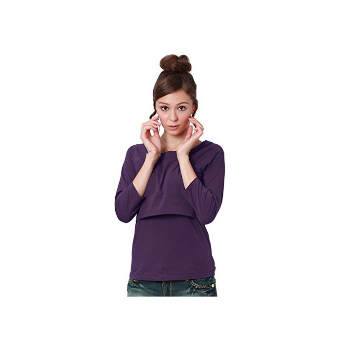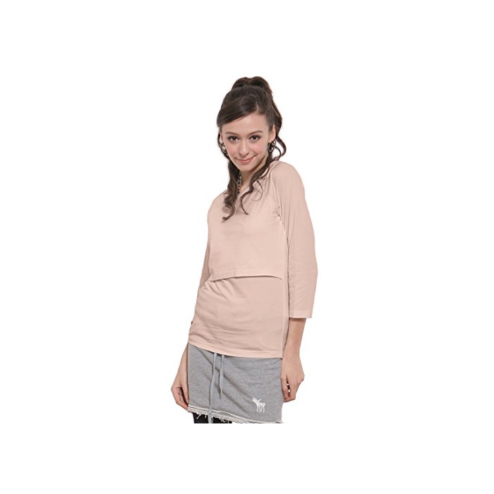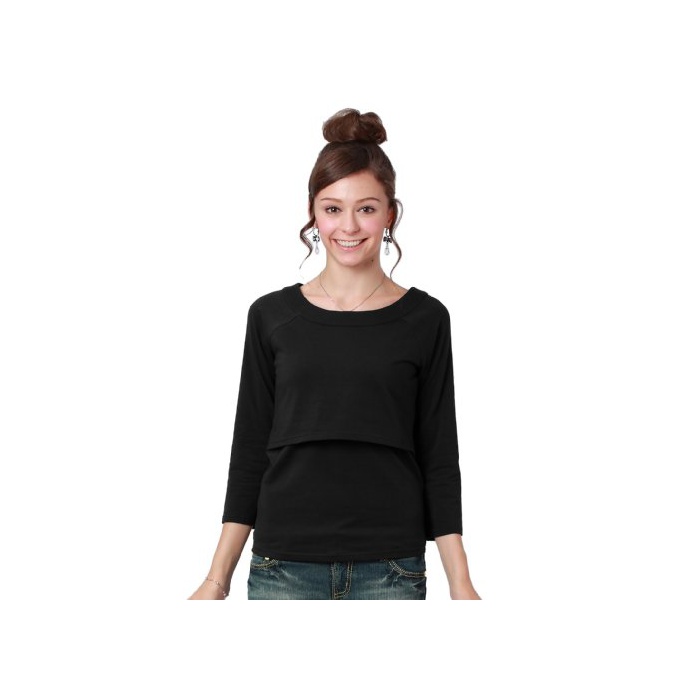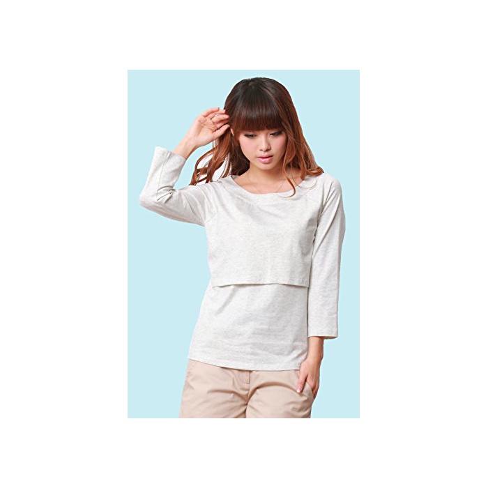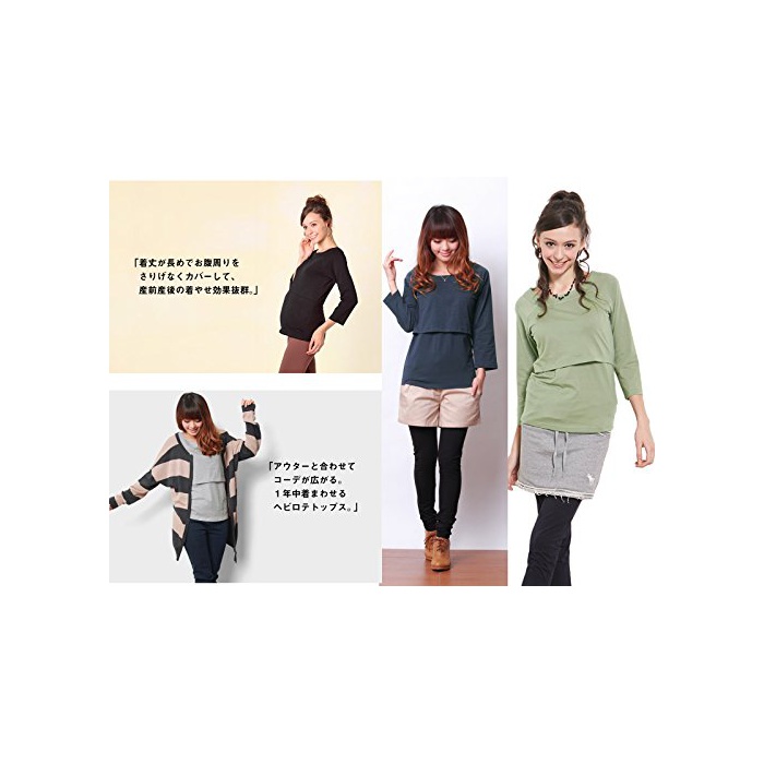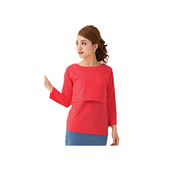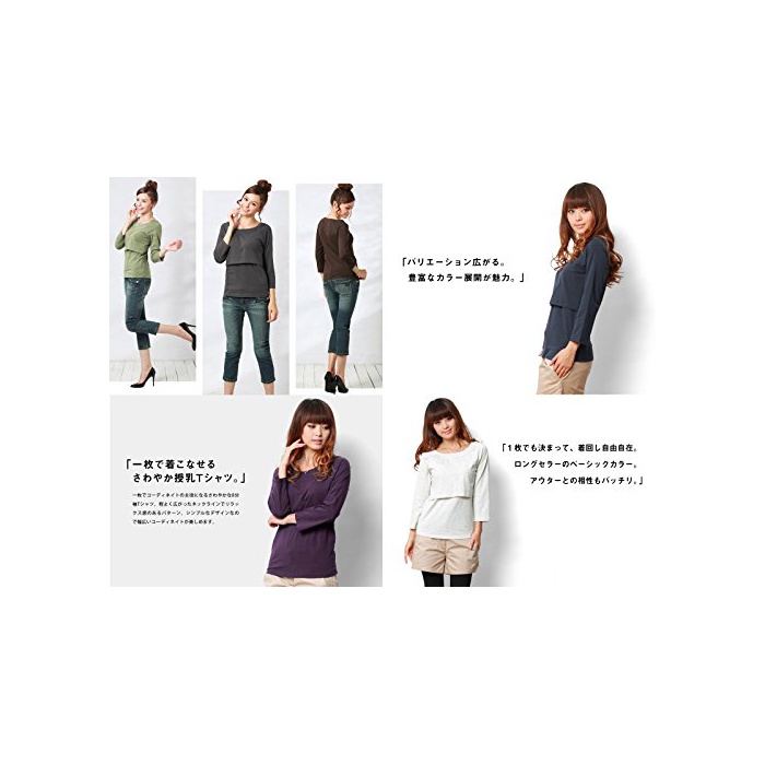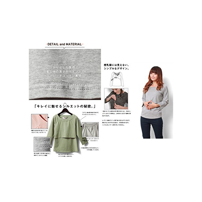 원본상품명: Sweet Mommy デコルテすっきり 授乳口付 Tシャツ ストレッチコットン すっきりネックライン ラグラン 【8分丈】 授乳トップス 授乳服 マタニティウェア