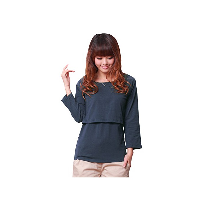스위트마미 Sweet Mommy 데콜테(Decolletee) 깨끗하게 수유T셔츠 스트레치 코튼 깨끗하게 네크라인 raglan 【8 분키】 수유복 / 마타니티 웨어 M 네이비