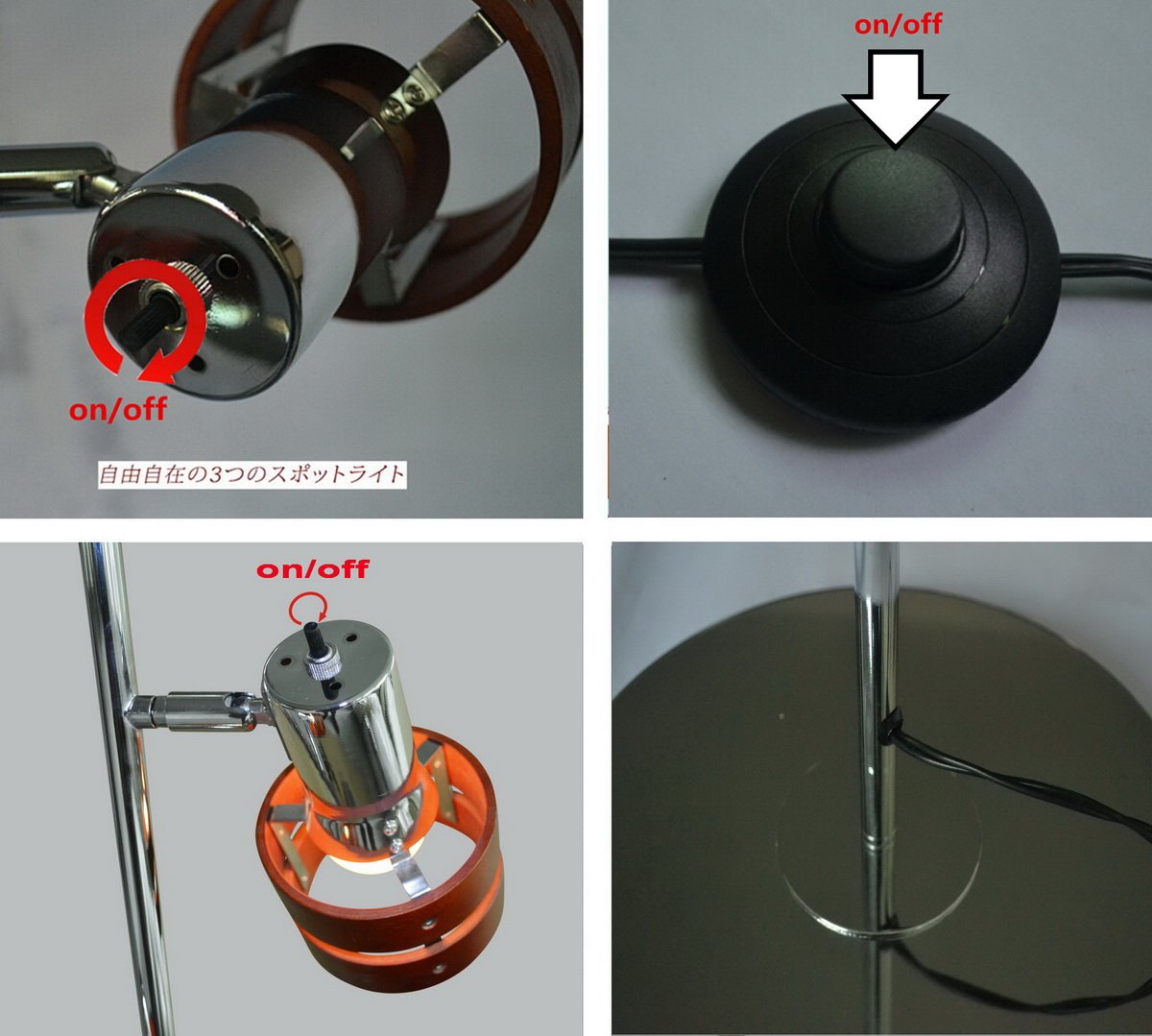 Arrange light by individual lighting Each spotlight has a rotary switch, so you can turn on the three spotlights separately.