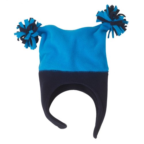 -. Title : Microfleece PomPom Hat with Ear Flaps for Boys and Girls - Alta Blue and Black