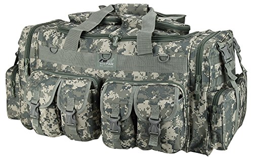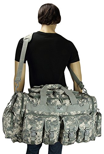 -. Binding : Misc. -. Brand : NPUSA -. Feature : INCLUDES: Key Ring Carabiner (colors vary) / Material: 600D High Density Polyester for daily durable use. Interior water proof PVC lining provides protection from water.Excellent storage: 4 front buckle strap pockets, 2 large zippered front pockets, U-shape opening main compartment, 2 zippered pockets on top of main compartment flap, 2 side zippered pockets on each side / Attachment points: molle strap system on sides, 3 front D-rings, 2 side (4 total) buckle snap load compression/hangstraps / Backpack padded adjustable straps with zippered stow away pocket when you don't need them; removable adjustable shoulder strap with pad; Heavy duty branded zippers; main handle has wrap-around velcro strap for better grip / Dimensions 30 in(L) x 14 in(W) x 12 in(D) -. IsAutographed : 0 -. IsMemorabilia : 0 -. Label : NPUSA -. Manufacturer : NPUSA -. ProductGroup : Sports -. ProductTypeName : SPORTING_GOODS -. Publisher : NPUSA -. Studio : NPUSA -. Title : Mens 30 Inch Convertible Backpack Duffel Molle Tactical Shoulder Bag with Key Ring Carabiner