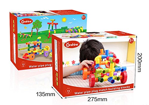 -. Feature : The Water Pipe Plug Match building block includes 72pcs accessories ( 15pcs cross pipe, 15pcs 'T' shape pipe, 15pcs straight pipe, 15pcs bending pipe, 4pcs alxe, 4pcs wheel and 4pcs wheel fastner). / Multi-colored and different shape make kids know more about the world. Stimulate their imagination. / Advanced environmental ABS plastic material is good for kids in using and playing. 100% Eligible materials for baby DIY safely! / Baby will found interests in the building process. It is a nice gift for your baby. / Bebamour 72pcs with Wheels Construction Building Interlocking Set is for ages 3+. No batteries required. Easy in using!