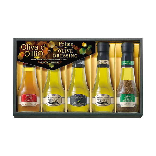 ●スペイン アンダルシア エステパ産のオリーブのみを使用し、バランスのとれたフルーティな香りと味わいが特長の「Oliva d'OilliOエキストラバージンオリーブオイル」と、2種類の爽やかなドレッシングを詰め合わせたギフトです。