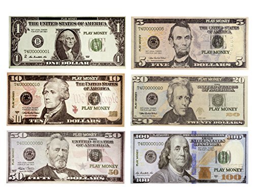 The big idea: Play money coins and bills learn about money and develop important basic math skills with this realistic set of bills and coins from educational insights. Count, subtract and quarters with confidence through pretend play and authentic learning. Fake money that looks real the life-long benefits of teaching children good money habits make it well worth the effort. Children who are not taught these lessons pay the consequences for a life-time. Playkidz play money bills teaches your children the importance of money educational and learning skills teaching math skills with is a relevant and motivating learning experience. Playkidz money holder ultra-realistic sets feature reproductions of American money that encourage realistic play and authentic learning. Kids can enhance their counting abilities. Money set is ideal educational toy which teach the basic counting and math concepts. The nitty-gritty: Key features - build confidence in counting money. - Develop early addition and subtraction math skills. - Great for imaginative and pretend play. - Learn to add, subtract, and count money- includes $9300 in play money - pretend dollar bills - realistic money stack - that look real - small bills (5 x 2.5 inches) - 50 of each amount - 300 bills total that help little learners recognize denominations. - Realistic dollar bills:50 x $1 bills, 50 x $5 bills, 50 x $10 bills, 50 x $20 bills, 50 x $50 bills and 50 $100 bills. - Includes easy to store bill sack. - Perfect for kindergarten +.Feature