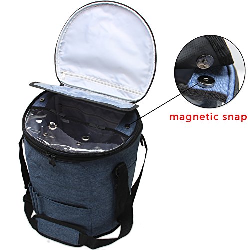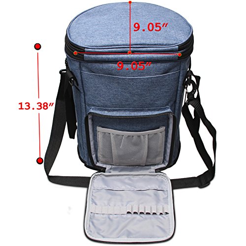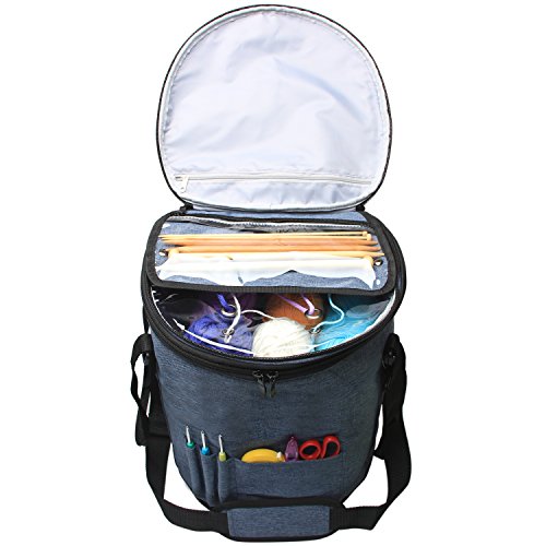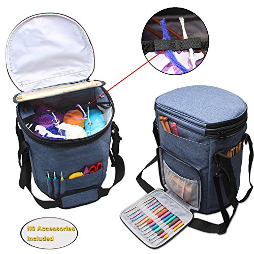 Teamoy Knitting Tote Bag, Round Yarn Storage Organizer with a Cover, Inner Dividers for Yarn, Unfinished Projects, Crochet Hooks, Knitting Needles and Other Supplies, Blue
