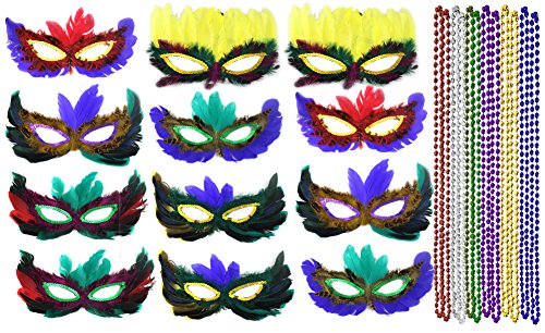 -. Brand : Well Pack Box -. Color : Multi -. Department : womens -. Feature : 12 Pack Of Mardi Gras Masquerade Party Feather Fantasy Masks and Bead Necklaces in Assorted Colors / 12 Mardi Gras Feather Masks. New in sealed package. 6 Different Designs 2 Of Each Design / Masks Are As Shown In Picture / Metallic 33" 7mm Bead Necklace in 6 Different Colors 2 of Each Color for Added Fun / BUY WITH CONFIDENCE -. Model : Mardi Gras Mask Beads Costume Feather St -. PackageQuantity : 12 -. ProductGroup : Apparel -. ProductTypeName : ADULT_COSTUME -. Size : 12 Person Pack -. Title : Mardi Gras Mask & Beads Feather Costume Masquerade WellPackBox 12 Person Party Pack