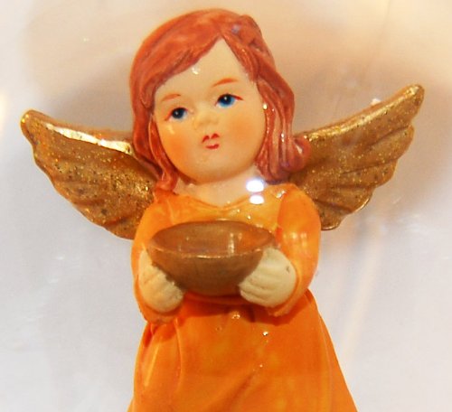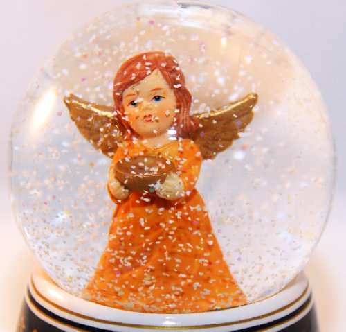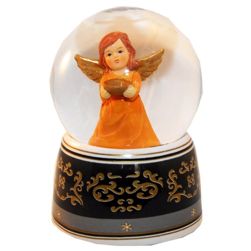 20035 Schneekugelhaus Angel Orange with Bowl & Music Box Snow Globe