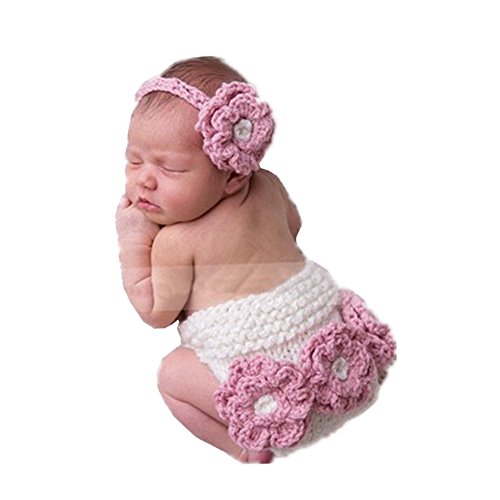 -. Title : Newborn Baby Photography Props Outfits Crochet Girl Costume Flower Headdress Pant