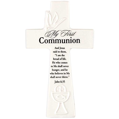 My First Communion John 6:25 White 6 Inch White Porcelain Wall Cross