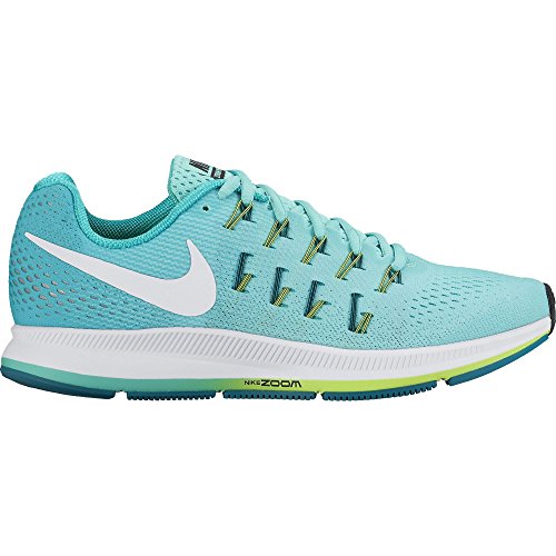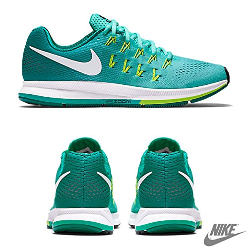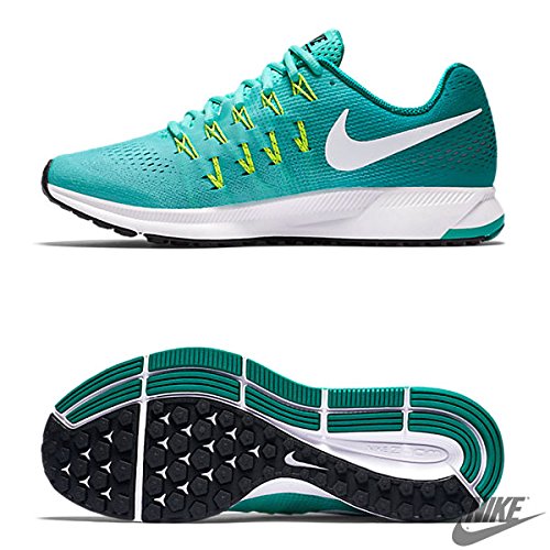 Nike Air Zoom Pegasus 33 Women's Running Shoe delivers a smooth, snappy ride with a finely tuned outsole that features impact absorbing cuts within the crash rail, Waffle pistons and a radiused heel.