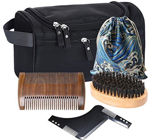 Beard Grooming & Trimming Kit for Men Care - Toiletry Bag,Beard Comb,Beard Brush, Beard Shaping Tool,Cotton Carrying Bag, Shaping & Growth Gift set