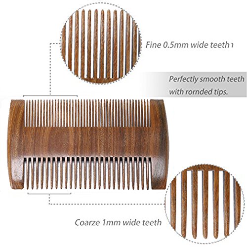 - Sandal Wood Beard Comb: The comb is made of high quality sandal wood,One side is standard teeth, another is fine teeth, Designed to give you maximum grooming precision regardless of beard type,Durable, easily handled for daily use, anti static, snag free and no tangles are also the benefits.