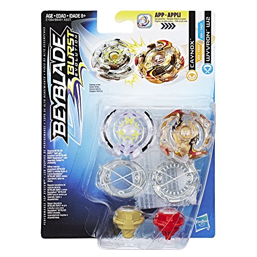 -. Feature : Beyblade Burst Evolution right-spin top Caynox -- stamina type / Beyblade Burst Evolution right-spin top Wyvron W2 -- defense type / Can "burst" into pieces in battle (burst rates vary) / Ages 8 and up / Includes Beyblade Burst: right-spin tops (2) and instructions.