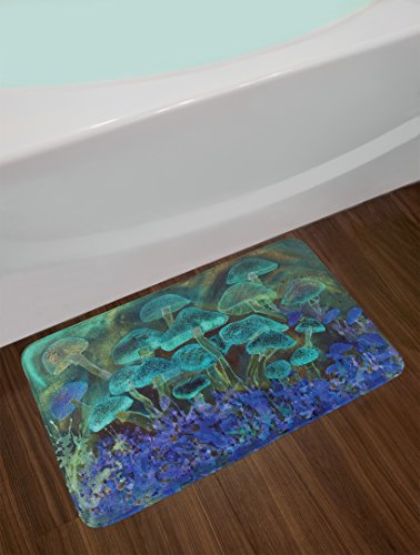 Psychedelic Bath Mat by Ambesonne, Unusual Speckled Fluorescent Mushroom Figures Dreamy Fantasy Graphic, Plush Bathroom Decor Mat with Non Slip Backing, 29.5 W X 17.5 W Inches, Slate Blue Violet