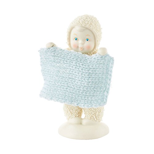 - Showcases a Snowbaby playing peek-a-boo with a hand-knit, blue blanket