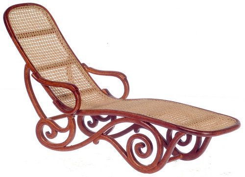 DOLLHOUSE MINATURE PLATIUM CHAISE LOUNGE WICKER WALNUT P6327