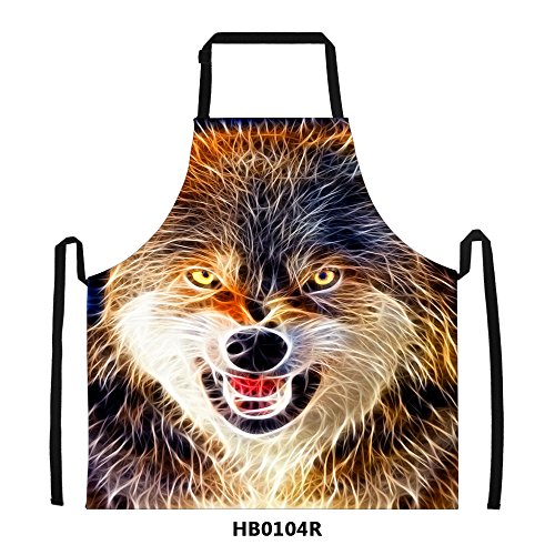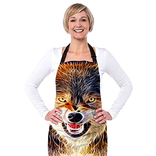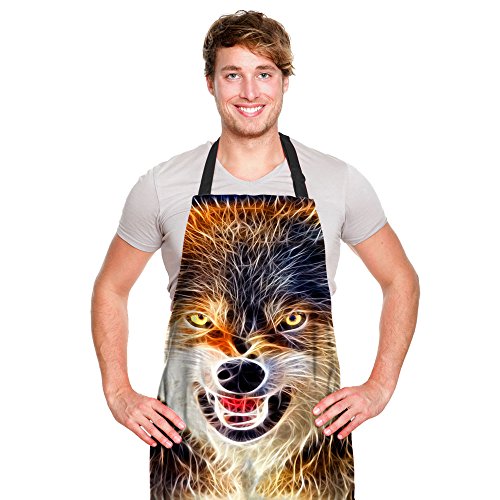 FOR U DESIGNS Cool Wolf Print Men's Kitchen Chief Cooking BBQ Bib Apron Gift